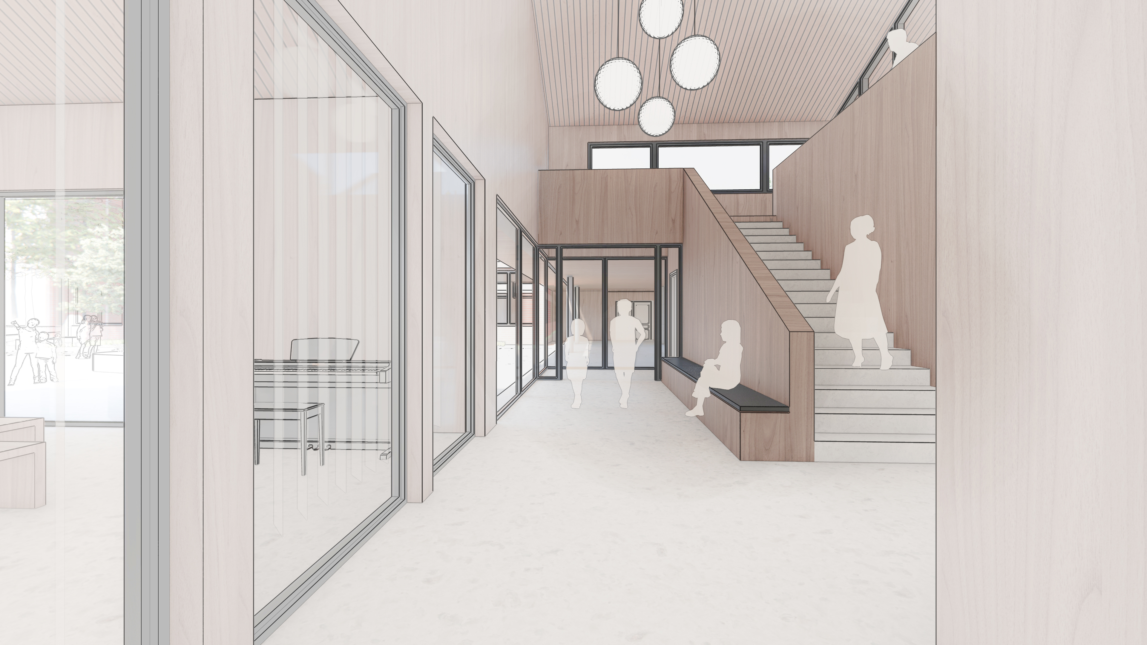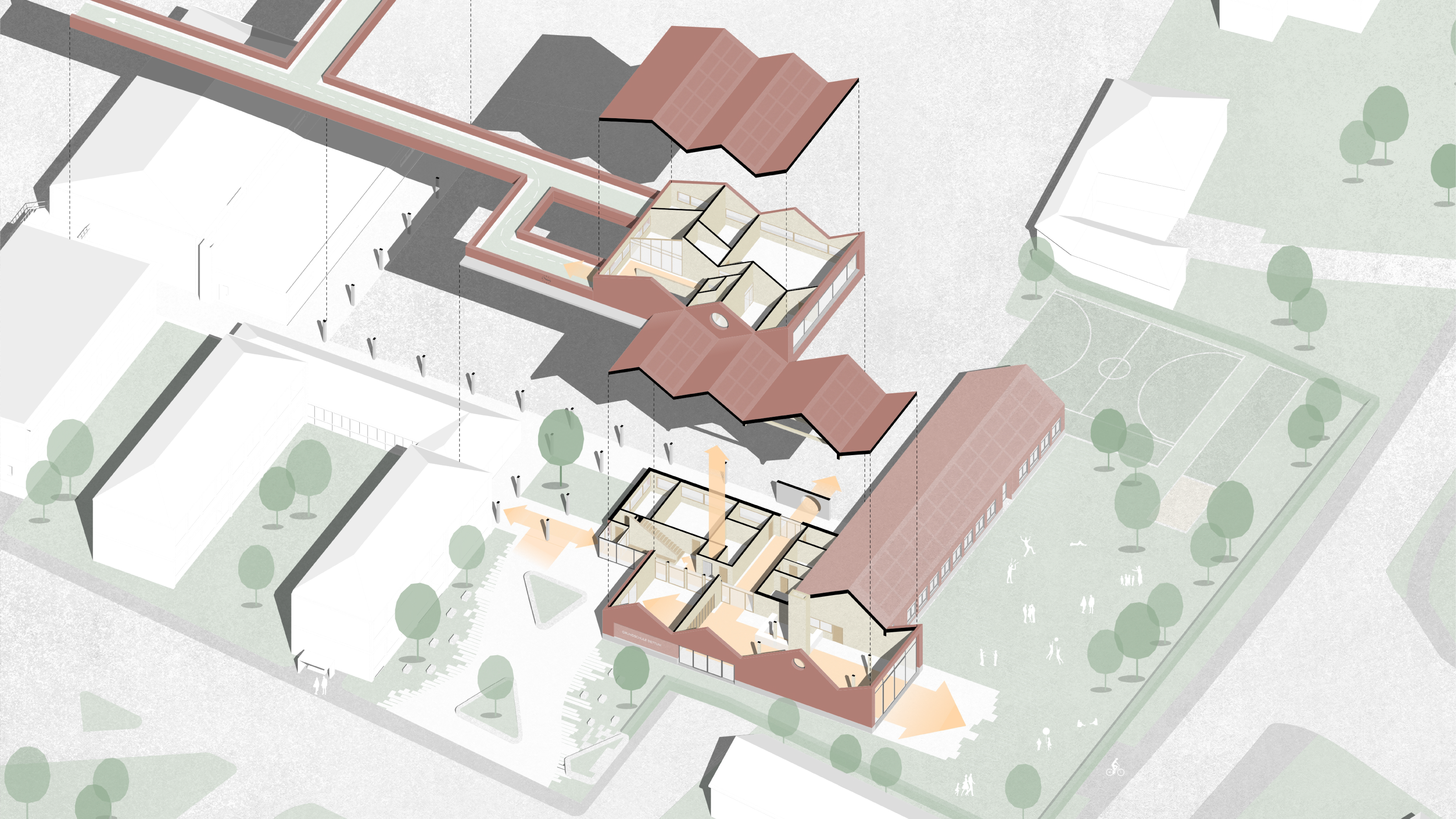 Raumangebote sollen die Schule zukunftssicher und gut vorbereitet für die Ganztagesbetreuung aufstellen. Ziel des Entwurfes ist es